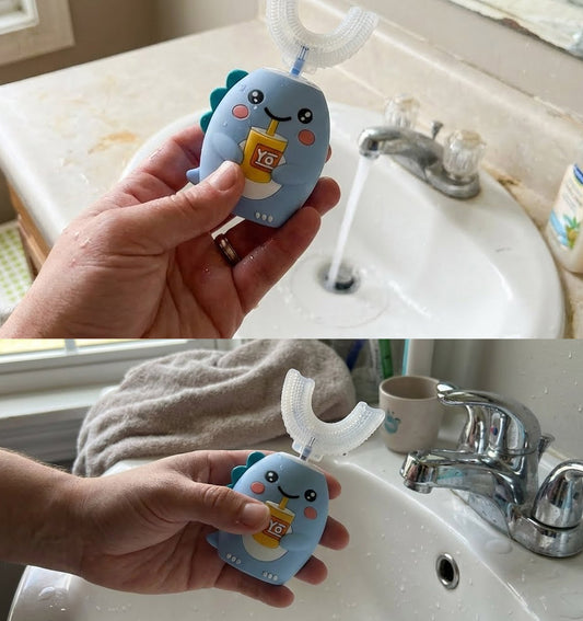 Rosegy Kids U-Shaped Electric Toothbrush (Ages 6–12) – Dinosaur Design, 360° Cleaning, 5 Modes, Waterproof