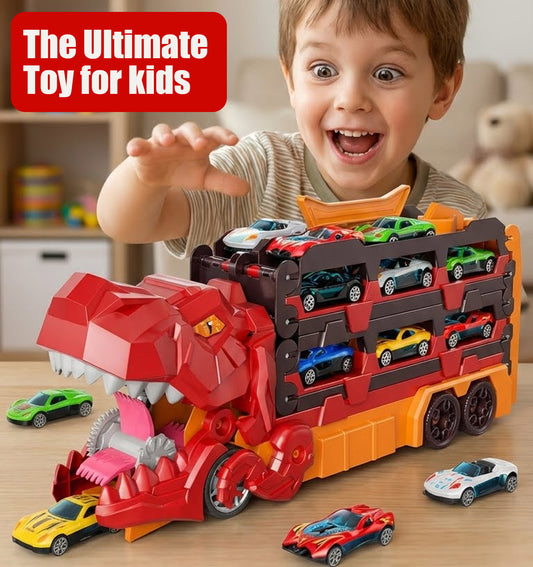 Foldable Ultimate Dinosaur Transport Truck Toy Set for Kids Aged 3-7 – Includes 12 Small Cars