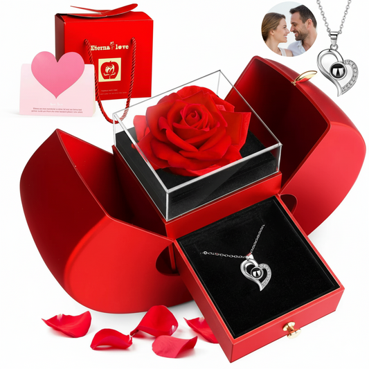Luxury Photo Projection Sliver Eternity Heart Necklace with Beautiful Gift Box